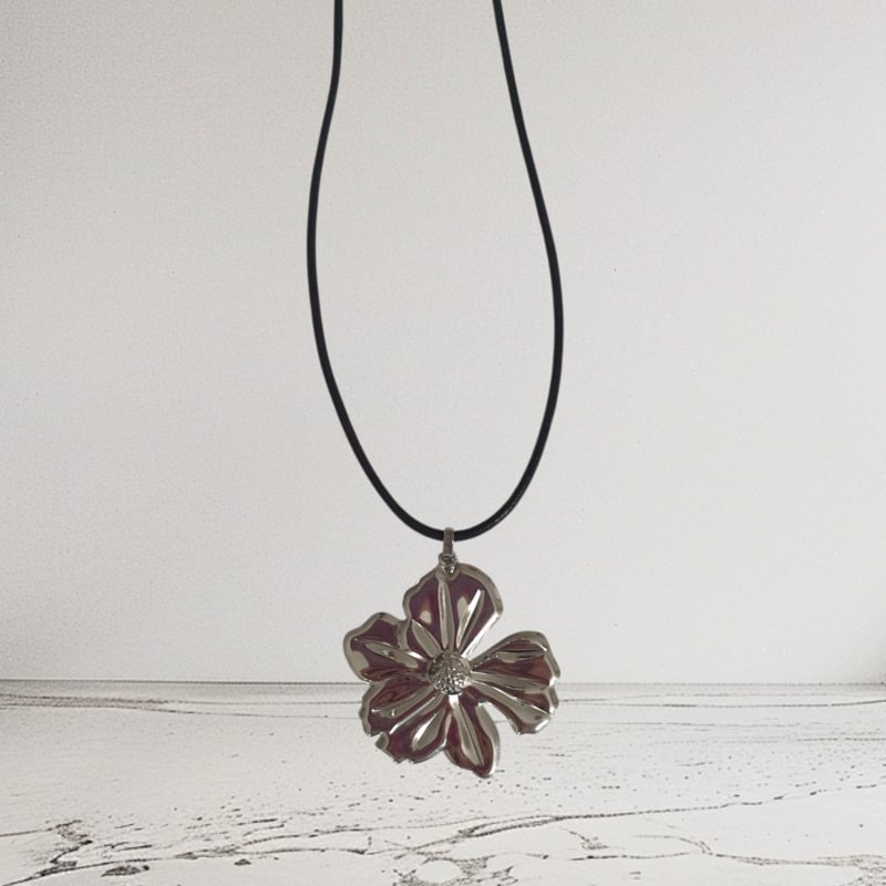 Deze prachtige ketting heeft een grote bloemhanger die gemaakt is van stainless steel.
